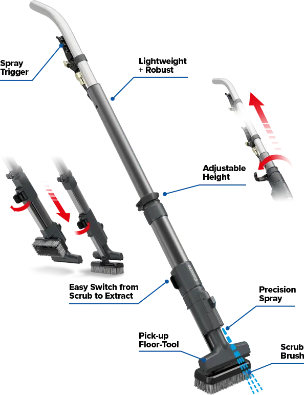 Clean, scrub, extract & dry in one pass